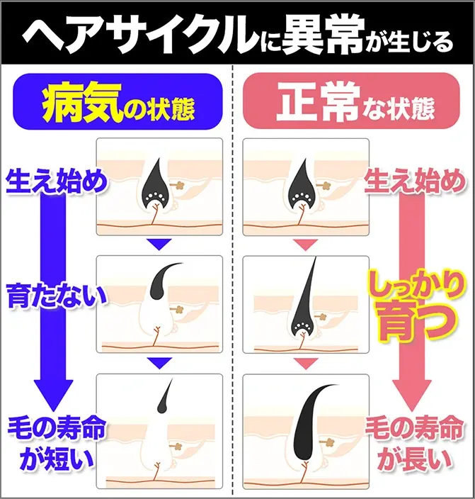 「分け目」「頭皮全体」が薄くなる